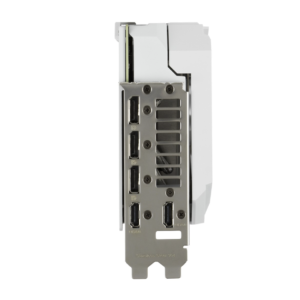 Mặt sau của card màn hình ROG Strix RTX 3090 OC White có hai đầu cắm PWM FanConnect cung cấp thêm tính linh hoạt cho việc tự ráp máy Quạt của case có thể được gắn trực tiếp vào GPU và được điều chỉnh theo biểu đồ dựa trên nhiệt độ CPU và GPU, cung cấp thêm lượng khí nạp hoặc khí thải cho các tác vụ 3D tải nặng.