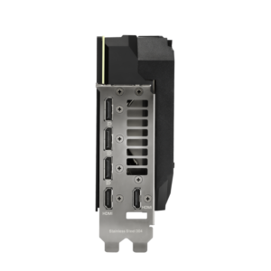 Một lỗ thoát hơi rộng ở mặt sau và PCB rút gọn cho phép không khí nóng thoát ra phía quạt thông gió của thùng máy thay vì bị kẹt lại bộ làm mát. Giá đỡ GPU cung cấp thêm độ ổn định cho kết nối quan trọng giữa nhân đồ họa và bộ tản nhiệt. Khung I/O được làm từ thép không gỉ để bảo vệ các cổng cắm và giúp khung đỡ chắc chắn hơn. Công tắc Dual Bios được đặt ở vị trí thuận tiện cho phép lựa chọn nhanh giữa chế độ “tăng tốc” và “yên tĩnh” để tùy chỉnh hoạt động mặc định của card mà không cần phần mềm.
