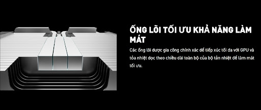 - Cool 360 gồm 1 ống dẫn nhiệt chạy toàn bộ bề mặt VGA giúp tản nhiệt cân bằng