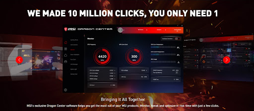Tăng hiệu năng, điều chỉnh ánh sáng, tốc độ quạt, nhiệt độ,.. tất cả đều được tích hợp trong MSI Dragon Center