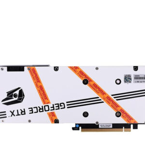 Colorful iGame RTX 3060 Ti Ultra OC White được trang bị 1 tấm ốp lưng cùng tone màu trắng phía sau để tăng cường kết cấu, tính thẩm mỹ cũng như khả năng tản nhiệt thụ động cho card và ngăn khí nóng không lan sang những linh kiện xung quanh.