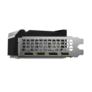 – Gigabyte RTX 3070 Ti GAMING OC 8G xoay các quạt 2 bên theo hướng ngược lại, để hướng luồng không khí giữa hai quạt là như nhau, giảm sự nhiễu loạn và tăng cường áp suất luồng không khí.