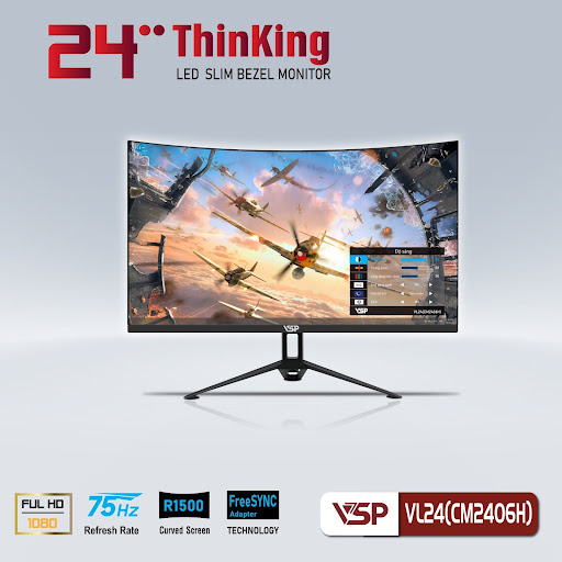 Màn hình cong VSP VL24 (CM2410Q) Tần số 75HZ +tự động đồng bộ hóa tần số làm tươi mới màn hình. Với tốc độ khung hình tính bằng số lượng khung hình chạy trong một giây